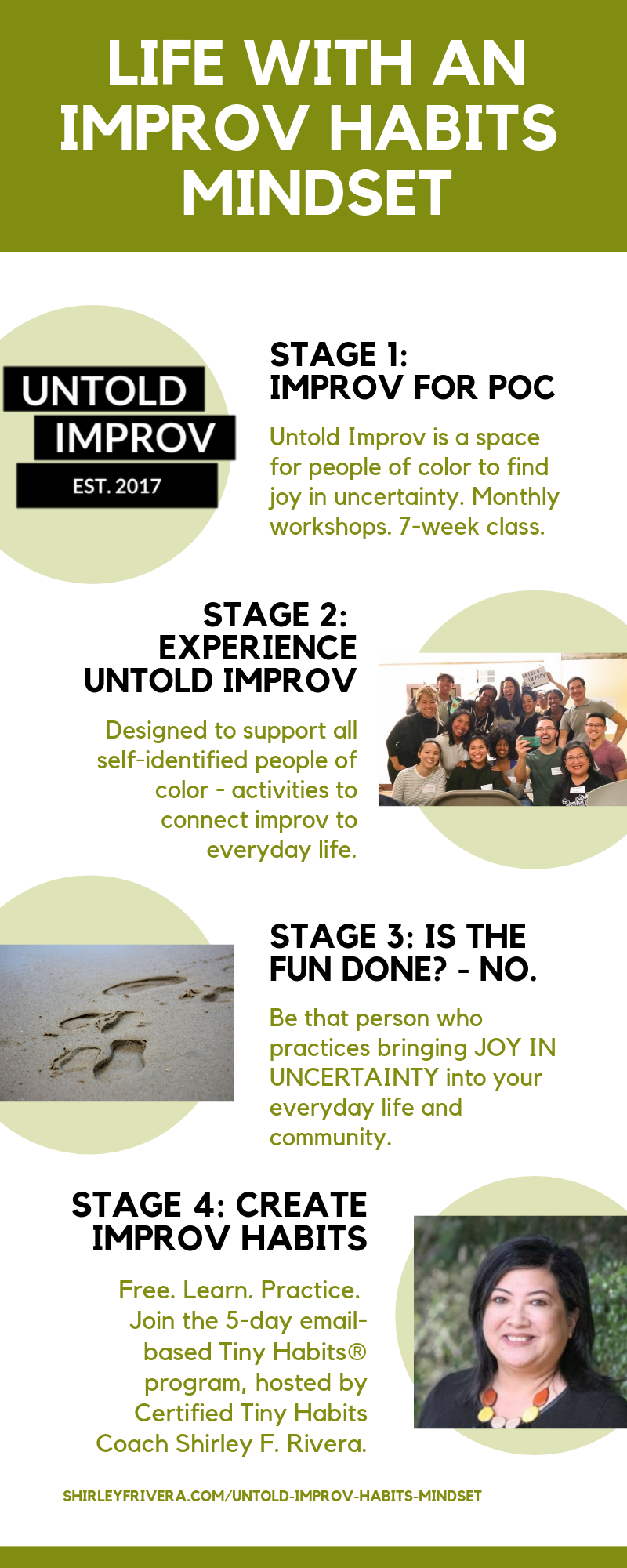 I serve as a Community Catalyst for Untold Improv, a San Francisco nonprofit 501(c)(3) organization founded in late 2017 whose mission is to serve communities of color who have historically been underrepresented or excluded from performing arts.